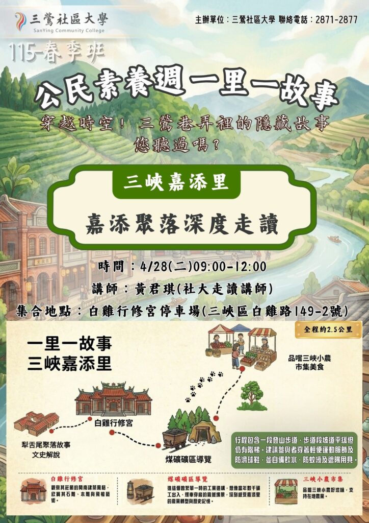 4/28 (二) 三峽嘉添里 | 三鶯社大走讀名師 黃君琪老師 領航。
