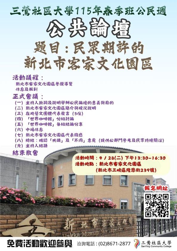 💡【公共論壇:民眾期許的新北市客家文化園區】