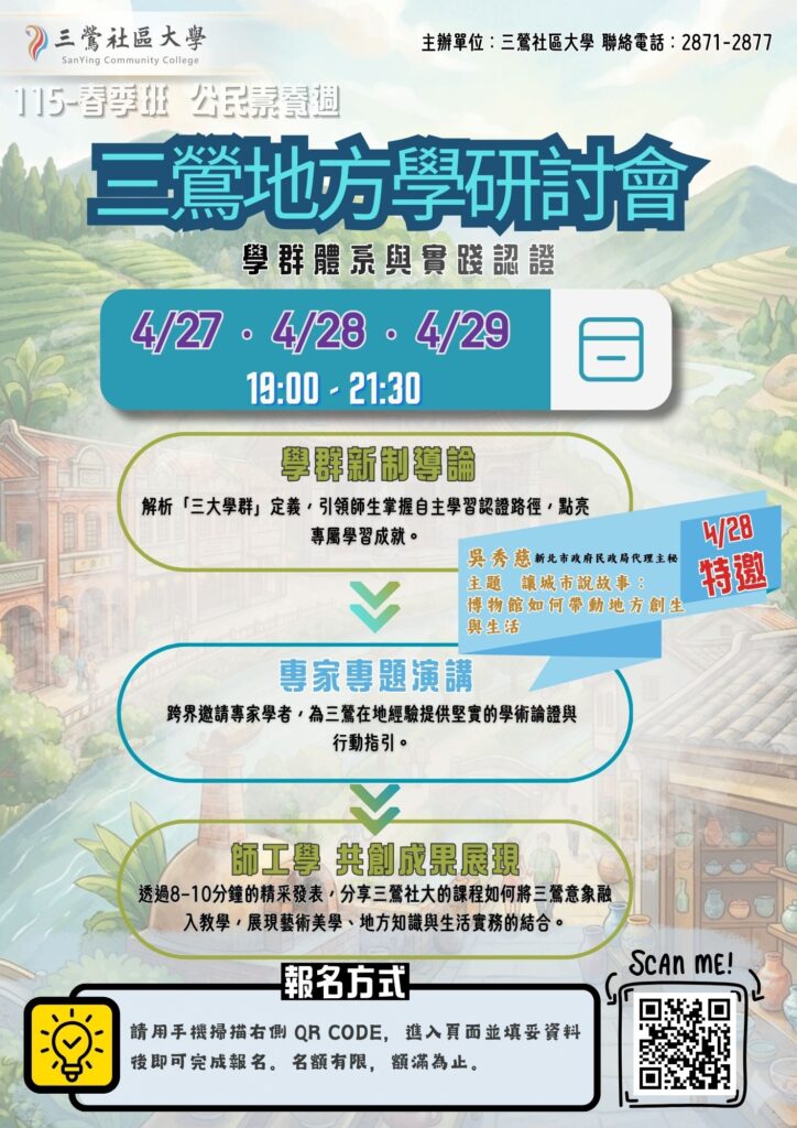 三鶯地方學研討會報名連結 : https://forms.gle/mVgTEGuz7Einhbi97