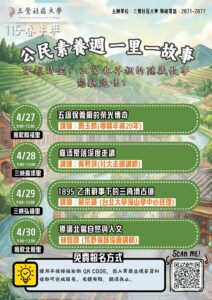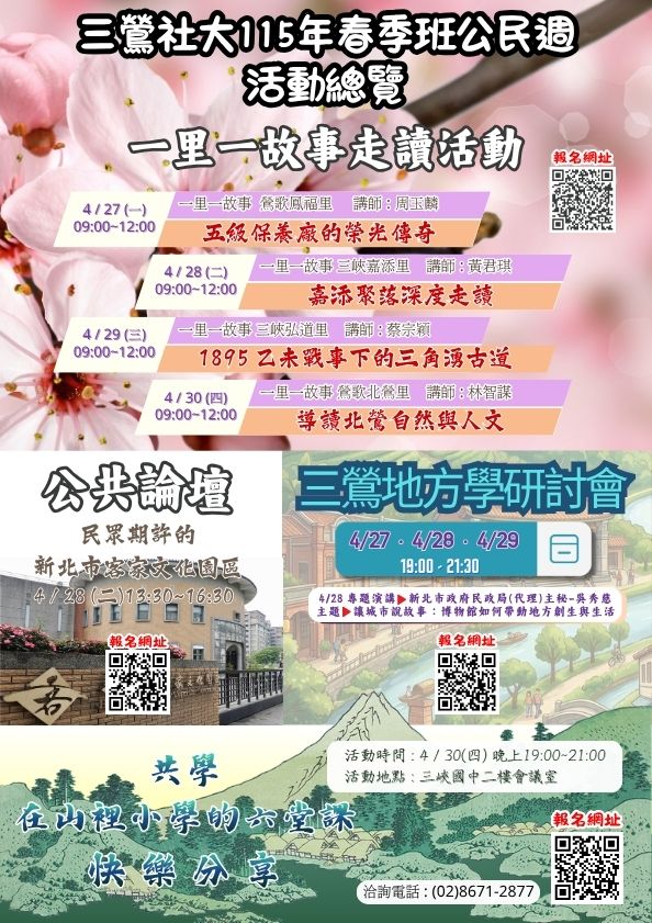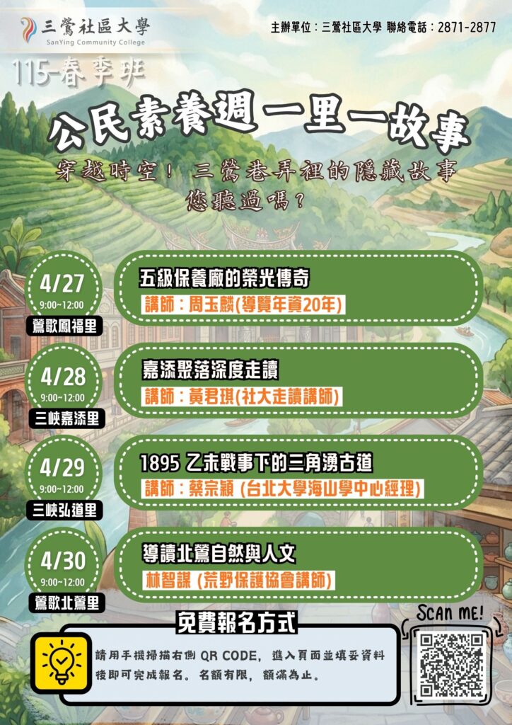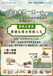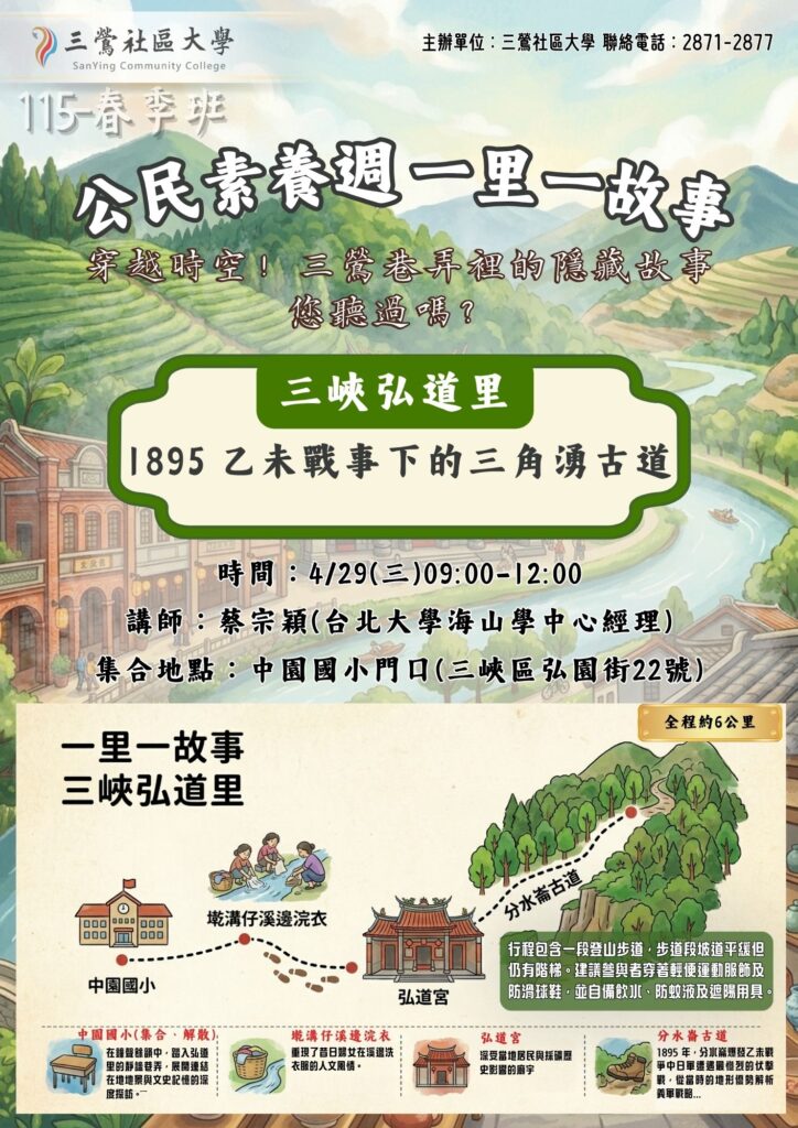 4/29 (三) 三峽弘道里 | 台北大學海山學中心經理 蔡宗穎老師 深度解析。
